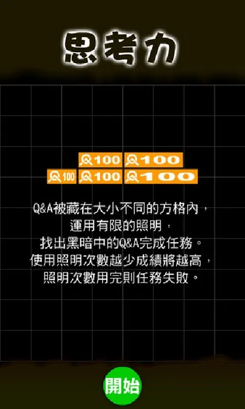 地震百问由中央气象局出版,以问答的方式介绍地震的各种基本知识。虽然文字浅易近人,但是静态的内容在强调声光效果的电脑多媒体环境下不易获得细心的阅读。因此本作品特别设计延申其问答方式浅显易懂的优点,融入时下最热门的行动装置游戏方式,让使用者在游戏的同时,不知不觉的获得地震的相关知识。 由于地震百问设计为100个问与答,单一游戏再怎么好玩也容易因为重复而产生单调的感觉,因此本作品特别设计成5个针对行动装置操作方式的不同游戏,每个游戏必须找出5个地震Q&A并得到正确的答案才能完成任务。出题的地震Q&A内容来自随机次序的地震百问,每次游戏5题,亦即不间断玩20次游戏(包括放弃)之后才会重新排序。 1.「判断力」游戏,手指上下左右四个方向滑动,指挥游戏主角前进方向或更换颜色,沿着色彩向下前进寻找Q&A。 2.「敏捷度」游戏,手指上下左右四个方向滑动,指挥主角前进方向,吃掉计次标记以获得Q&A,同时避免碰撞障碍物、四周边界或自身,否则任务失败。 3.「方向感」游戏,利用行动装置移动感应器功能,摇晃装置控制主角的移动方向,在迷宫内寻找Q&A完成任务。 4.「思考力」游戏,运用有限的照明(点触)次数,找出藏身在黑暗中大小不等方格内的Q&A,照明次数用完则任务失败。 5.「行动力」游戏,快速使用手指拖曳移除障碍物,取得Q&A完成任务。 每个游戏完成之后将记录完成任务的最佳成绩,最短时间或最高得分,让玩家可以重复冒险,挑战改写每一游戏的最佳成绩,借此可让玩家熟记地震百问内容。除了5个游戏之外,另设置“地震百问”选项,提供完整的地震百问内容查询。 本游戏系国立自然科学博物馆车笼埔断层保存区于2014年6月至9月期间举办「921地震15周年微创心坊创意多媒体行销竞赛」之APP创意设计子竞赛的得奖作品,竞赛团队作者为李笃易、陈炳辉、张淑富、何秀鬘、庄贵枝等人
