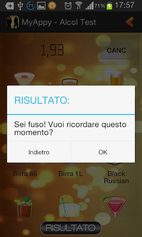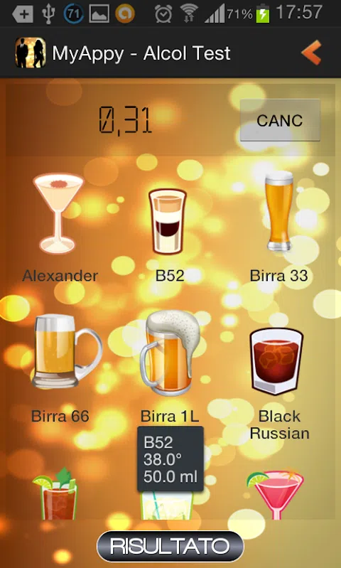试试我们新的、有用的和有趣的酒精测试 您将能够找出您所饮酒量的指示值,最重要的是拍下您的状态照片并与您的朋友分享