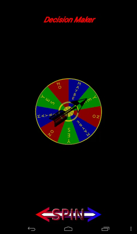 决策者 – 做出这些重要决策的好方法。 您所要做的就是转动轮子,您就知道该怎么做。 你应该吃甜点吗?旋转轮子。 你应该约那个特别的人出去吗?询问决策者。 今晚你会赢吗?决策者可能知道答案。 你会加薪吗?告诉你的老板转动轮子。 你应该穿上红色衣服吗?询问决策者。 你最喜欢的球队会获胜吗?旋转轮子。 这样的例子不胜枚举。对那些重要的决定有多大的帮助