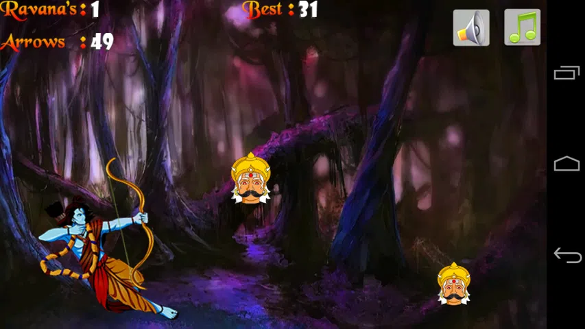 Dussehra 也被称为 Vijaya dasami 和 durgashtami。这是印度和更多国家的印度教徒最重要的节日。拉玛勋爵战胜滨海,这就是我们庆祝杜塞拉的原因。 所以我们为这个节日季发布了这款有趣的箭射击游戏。在这个游戏中,你必须用 50 支箭数尽可能多地用 Sri Ram 弓箭射击 Ravana 头。您可以拉回箭头并调整角度并将其释放到 Ravana 头部。 100 个 Ravana 头落下尽可能多地射击。如果您射击两个头,那么您将获得 2 个更多的箭头。 让我们用这款具有挑战性的射击游戏来庆祝这个节日。