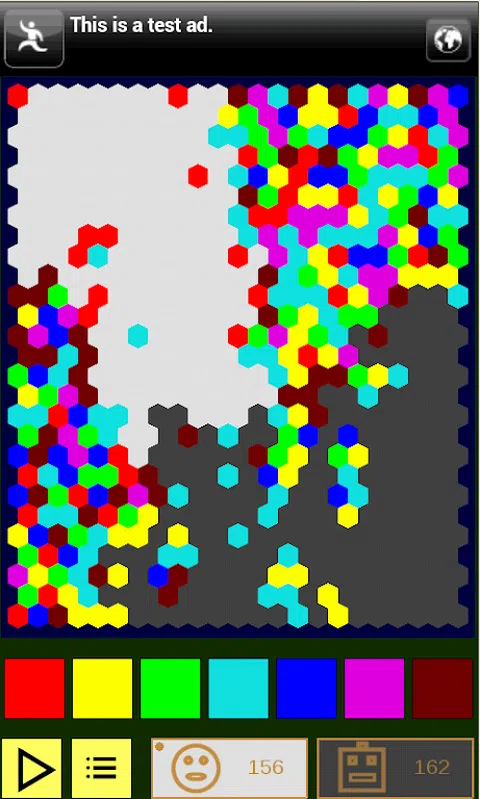 黑白帝国轮流上场。在每一轮,一个帝国选择一种颜色并吸收与其接触的所有该颜色的国家。第一个控制一半地图的帝国获胜