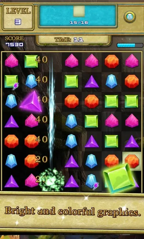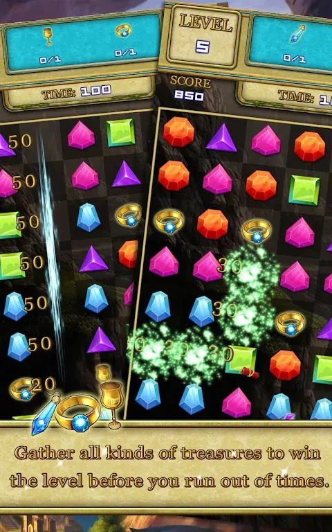 匹配3个或更多的宝石,挑战数百个独特的关卡。你的任务是找到宝藏并且得到它们。 怎么玩: - 匹配3个或更多的宝石清除它们。 - 清除所有挡板完成任务。 - 收集所有类型的宝物,在指定时间内完成关卡。 游戏特色: - 将近190个独特的关卡和3个世界。 - 容易上手,难于挑战完全掌握。 - 和你的朋友比赛