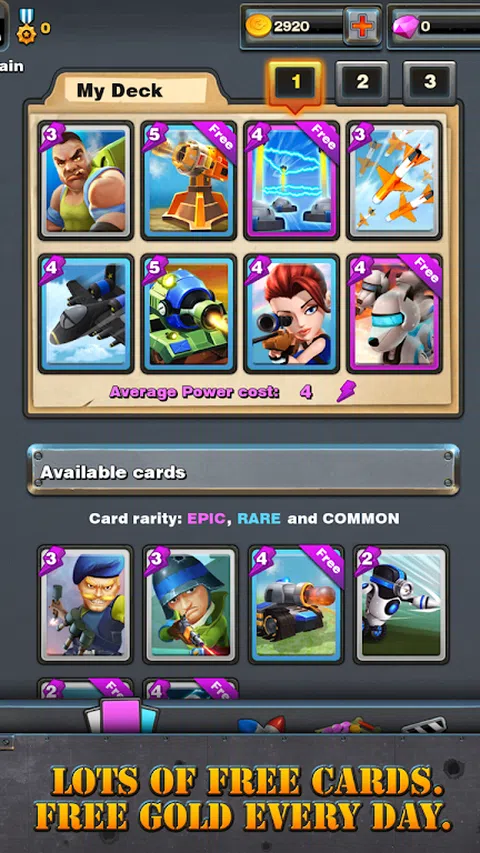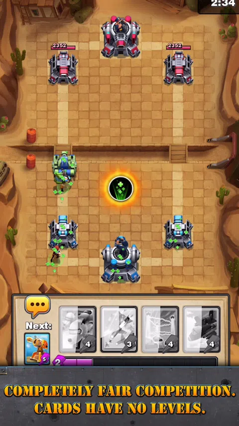 准备好粉碎敌人! 加入终极战斗,成为 Clash Metal 中的最佳指挥官!在这款实时多人游戏中免费畅玩! 招募强大的军队。建立你的军队为战斗做准备。摧毁敌人的守卫塔和指挥塔来击败你的对手,在各个战场上赢得分数和荣耀。 特征 - 与全球玩家实时对战。 - 没有水平了。一个真正公平的舞台在等着你。 - 击败对手赢得分数和金币,您可以使用金币购买任何卡牌。 - 分数决定你的排名。 - 在战斗甲板上部署你的部队,与不同的对手对战。 - 在各种战场上粉碎你的敌人。 - 通过观看 Top Show 上的最佳决斗来学习不同的战斗策略