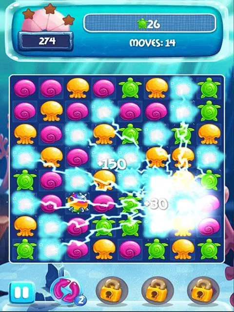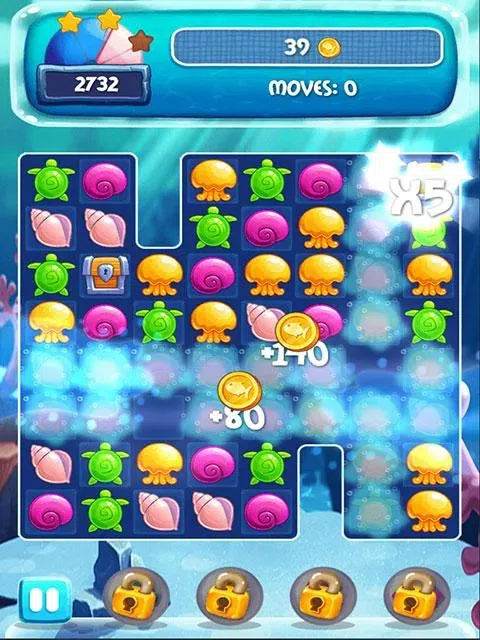 你有太多的饼干,你完成了珠宝吗?梦幻般的三消冒险游戏 Aquablitz 将带您潜入海底!在四百个具有挑战性的关卡中,您可以与水母、贻贝、海龟和其他海洋生物相匹配。每一步你设法匹配的生物越多,你将获得更酷的额外奖励。例如,匹配四个相同会给你一个断线,五个相同会给你一个可以删除一种类型的所有生物的特殊。 现在免费玩 Aquablitz,在海底走完两万里