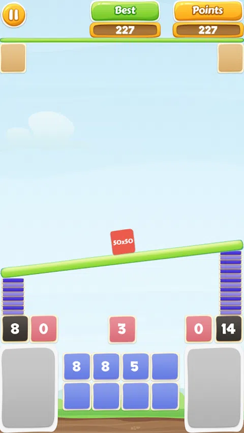 本场比赛的目标 - 移动立方体最多。获得同等数量的红色和黑色,挣块。 - 如果红色和黑色的数字是平等的,你会得到一个块。 - 如果不是黑色号码,红色号码越多,你失去一个块。 - 如果左和右块的数量由15不同,立方体下降。 - 保存在存储器中的号码。点击一些使用它