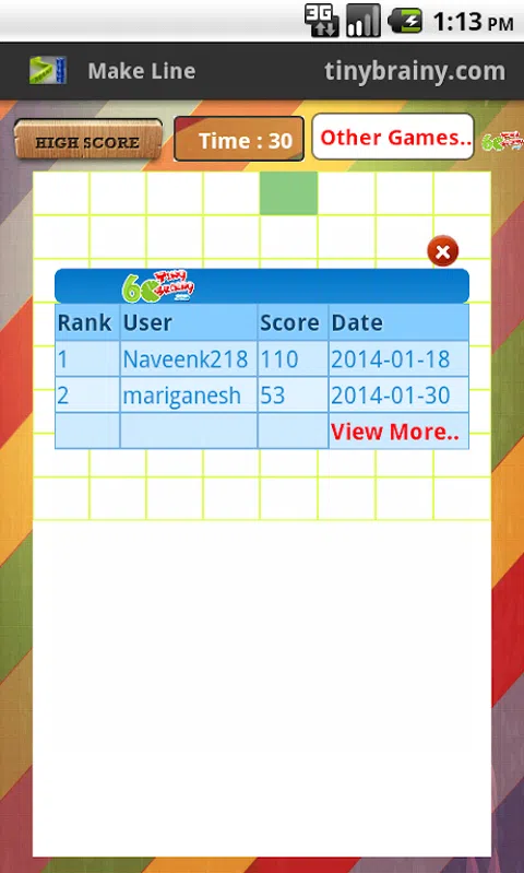 当每行的跳舞单元在 30 秒内相遇时,只需触摸屏幕即可制作一条垂直线