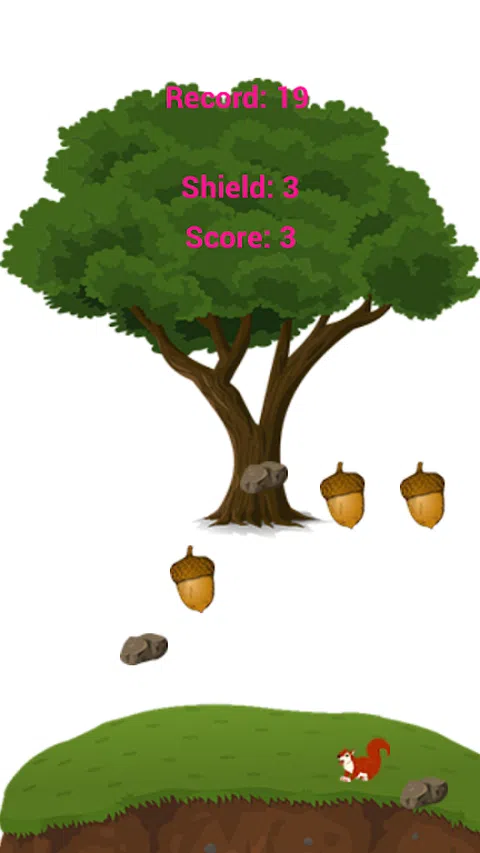 在这个游戏中,我们的松鼠需要为寒冷的冬天收集坚果。有很多坚果从树上掉下来,但也有很多石头。您将松鼠移到掉落的坚果上,从而帮助它。如果松鼠打了一个坚果,你就得一分。如果击中一块岩石,您将失去一个盾牌。游戏开始时你有三个盾牌,如果你都失去了,游戏就结束了。 坚果和岩石掉落时有时会跳动,因此必须小心,避免撞到岩石。 这是一个简单的游戏,适合孩子或像漂亮松鼠这样的人