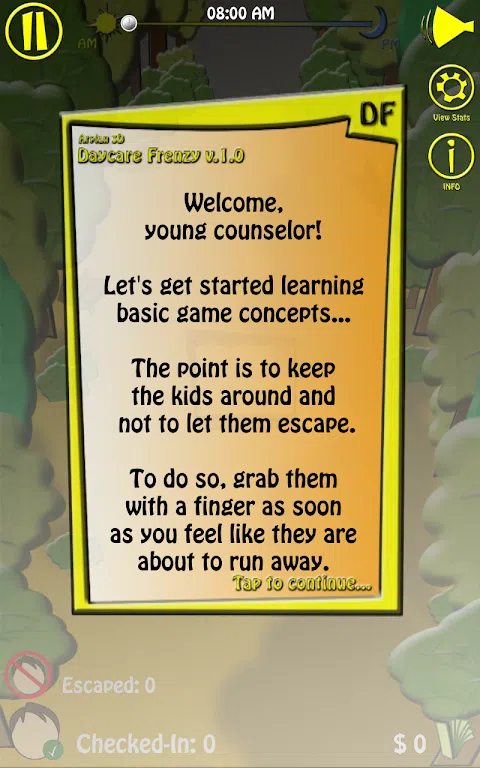 提高你的智商,获得新的许可证来赚更多的钱,并让更多的孩子委托你照顾。 有很多欢乐的时光,有很多顽皮的孩子,有很多成就要实现,有很多疯狂。 等到父母开始带孩子去你的游乐场并帮助他们照顾后代。 如果发现任何错误,请随时报告。 最新更新: - 减少关卡时间; - 模型放大; - 更多小费; - 修复了晚上的延迟问题