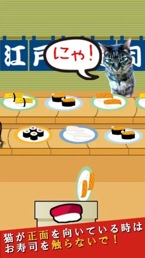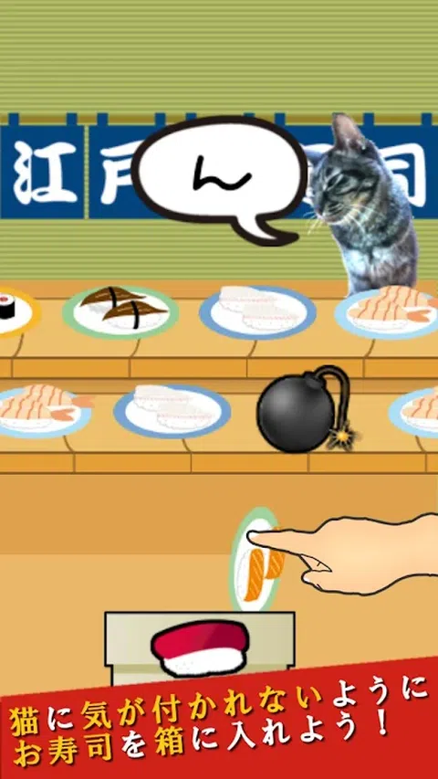 以达摩先生倒下的方式, 这是一种将寿司放入盒子中以免猫注意到的游戏。 ·怎么玩 “Nyaruma-san 是 koron-nya!”猫说。 将寿司轻轻放入盒子中,直到猫转身。 如果你在回头的时候抓住寿司,游戏就结束了