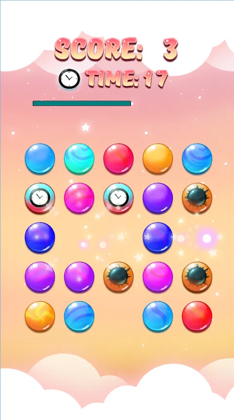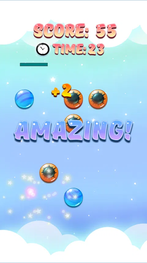 梦幻流行 在限定时间内消除尽可能多的泡泡! 破灭梦中泡泡的速度越快,获得的分数就越高! 但要小心,不要引爆炸弹! 在梦幻般的环境中玩耍,泡泡等着你破灭