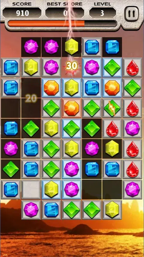 共同经历 宝石冒险 的游戏。共同经历钻石爆爆乐 的游戏于好玩儿、吸引力的游戏项目 宝石冒险 的游戏将会你们带来更多的吸引力,由高清显卡会让你们快乐,舒适和放松。 宝石冒险 的游戏的性能: ★ 高清显卡超好看,界面美丽、好看. ★ 效应多彩多姿、越玩越吸引 ★对所有型号的手机,平板电脑都会畅玩 宝石冒险 的游戏指示 ★将三颗颜色相同的宝石横排或竖排 ★越多越快的宝石被消去,关口就能越快地经过 ★对于被锁住或者结冰、化石的宝石,你需要消除旁边的一颗,以便除去这些宝石。 ★除去所有的障碍物后,出现带星的宝石,把它放在最低一行,你就得胜