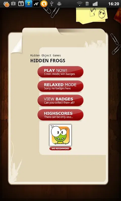 隐藏的青蛙是我们隐藏对象游戏系列中的最新产品。我们提供 2 种游戏模式:经典模式(5 分钟)和轻松模式。再次,您可以开始收集徽章并进入历史最佳球员的高分名单。 游戏是关于找到图片上的所有 5 只青蛙(进度条,看看你在做什么)。之后,您将进入下一个级别。青蛙隐藏得很好,不容易被发现。在 5 分钟内找到 100 只青蛙会给你带来五星级徽章。 希望你喜欢
