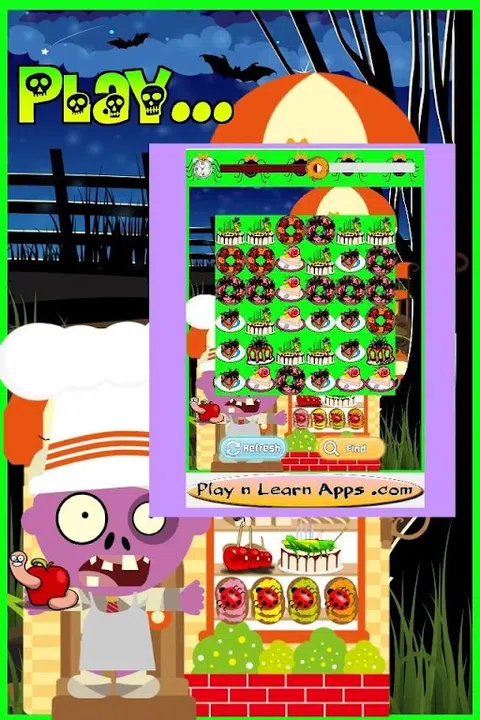 Zombie Game for Kids 是一款配对游戏。在这个适合幼儿的僵尸游戏中,尽情享受与不同的虫子僵尸零食相匹配的乐趣吧