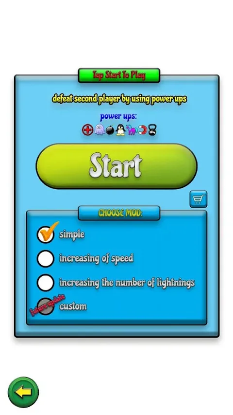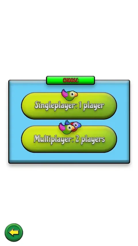 您可以自己玩,也可以只使用一部手机或一台平板电脑与朋友一起玩。 该游戏支持单人游戏和 2 名玩家的多人游戏以及不同的模组: - 速度增加 - 增加闪电数量 - 简单(没有变化) 如果您玩多人游戏,屏幕将分为两部分,第一部分用于玩家 1,第二部分用于玩家 2。您和您的朋友应该从对面拿走手机/平板电脑。 你可以在合作模式中与你的朋友一起玩,也可以在对战模式中尝试展示你们两个中谁是最好的。 适合两名玩家的游戏模组: - 玩家对玩家:使用所有能量来击败第二个玩家。 - 合作:与第二名玩家一起飞得尽可能远,以解锁一些很酷的新皮肤。 Crazy Birds Multiplayer 的游戏玩法非常简单: 要拾取电源,只需触摸它即可。 点击屏幕上的任意位置即可拍打翅膀,让小鸟飞起来。 滑动屏幕上的任意位置即可启动电源。 可用的电源: - 健康 - 炸弹 - 无敌 - 企鹅 - 独角兽 - 重量 - 重力 标签: 鸟、 疯狂的小鸟、 多人游戏、 两名玩家
