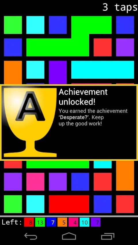 Tap Tap GONE 是一款易于上手但难以掌握的益智游戏。目标是一次摆脱所有颜色。但是,摆脱任何颜色都需要在进行最后一击之前仔细设置。 如果解锁更高的难度级别并获得高分不足以作为玩游戏的动力:游戏包含 96 个成就。有的要求打得特别好,有的要求打得特别差,有的要求做一些与实际比赛无关的事情。 主要特点: - 一个聪明的新益智游戏 - 数小时高度上瘾的游戏 - 96 项成就 Tap Tap GONE 的免费版本包含付费版本中八个难度级别中的四个。除了这个和广告,免费版没有其他限制