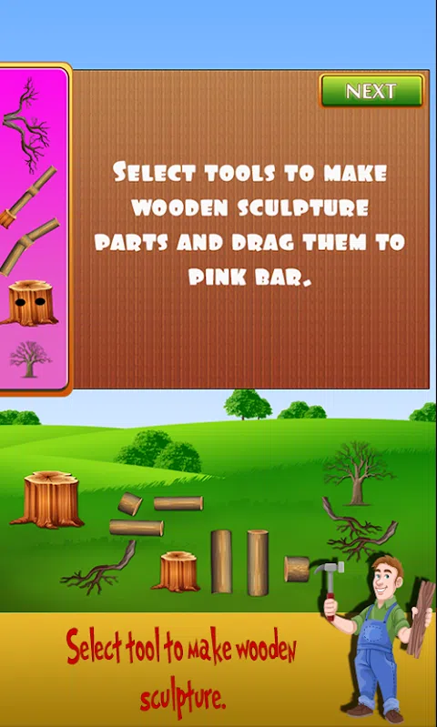 所有伐木工人,木材切割机及艺术家们兴奋地分享他们的故事,木材及讲述约翰如何,和他们一样,通过参加树雕塑展 改变了他的生活世界。让我们携手约翰在他砍伐树木,雕塑制作的旅程,他选择了木材切割工具,使一个真棒疯狂树雕塑。 驾驶你的卡车拖车和收集原木,原木的树和树枝搭建树模型。进入木雕刻工作室,并放置在树干上的木桌上。拿出你的雕刻工具。绘制在树干的形状。使用斧头切断就像从树干树枝杂草。超级樵夫现在已经用锯切断多余的木头做勾勒在树干的形状。作为一个艺术家,你,直到所有的木屑,从后备箱取出完美的形状。 接下来,你用你的雕刻和伐木工人工具和技能,剁下从木材原木枝头,凿形成上的日志光滑的表面。这个疯狂的树雕塑展可不是闹着玩的。你必须让一切完美,赢得了顶级雕塑家和樵夫奖。 拿你的构建工具定妆开始建立部分为木质雕塑。拖放到他们一旦树雕塑部分在此建设和雕刻有趣的游戏做的粉红色吧。组装木雕部件从给定的与得到的树雕塑准备参展的形状。每个人都会喜欢你的创造力和你的超级樵夫和雕塑家奖被授予。 立即下载这真棒,好玩的创意树雕塑展的游戏