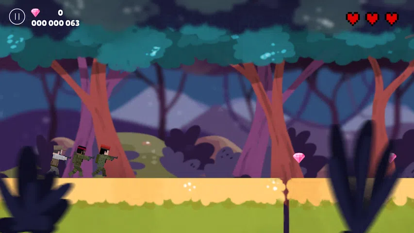 这个游戏是简单的动作。 跳跃并避开敌人。 并射杀他们以求生存! [怎么玩] ・左键点击屏幕,跳跃! ・右击屏幕,射击! ・通过触摸左两次尝试二段跳! ・收集钻石,让士兵让你的军队变得强大