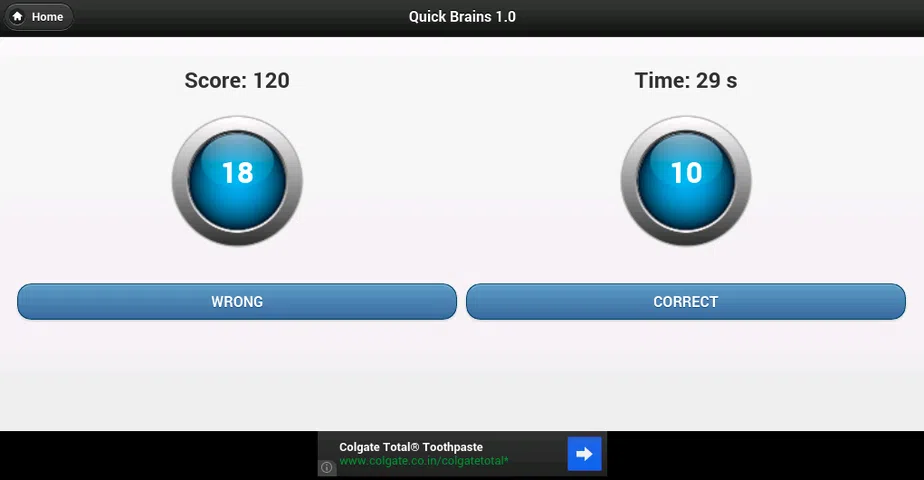 Quick Brains 是一款简单的、基于数字的脑力游戏。游戏画布将显示两个圆形框,每个框上都有一个数字。左边显示一个两位数,右边显示其数字总和。您需要通过单击按钮来确定总和是否正确。尝试在一分钟内解决最大值。每个正确答案都会获得积分,错误答案会获得负分。 Quick Brains 是一款有效的大脑游戏,可帮助您的大脑增强记忆力、注意力、解决问题的能力和速度。每天玩游戏以获得更好的结果