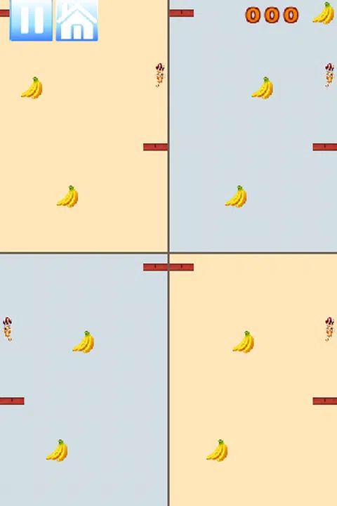 有趣且令人上瘾的伞兵猴子游戏。收集尽可能多的香蕉,不要撞到猴子。你有 3 个不同级别的难度