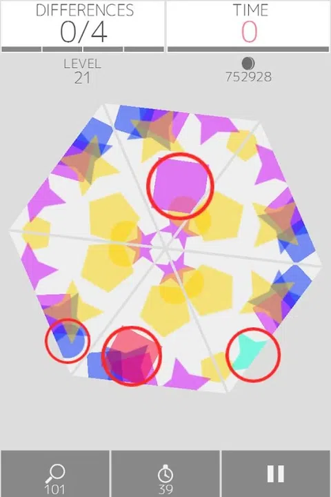 KALEID 是最新最酷的找茬游戏! 找出万花筒镜像中的差异! 多达 300 多个关卡,乐趣无穷! [怎么玩] KALEID 是一款找茬游戏。 比较万花筒的镜像,通过触摸差异来指出差异。 一分钟内找出万花筒中的所有差异来清除关卡。 - 生活 玩游戏需要生命。 (您可以在 Life 免费试玩。) 如果你错过了时间限制,你就会失去一条生命。 生命以每 15 分钟 1 人的速度恢复。 - 硬币 您可以通过清除级别或获得奖杯来获得金币。 您需要金币才能在商店购买商品。 - 探测器放大镜 如果你使用这个,然后检测万花筒中的差异。 - 恢复手表 如果您使用此功能,请延长 30 秒的时间限制