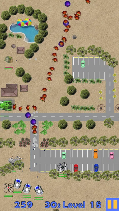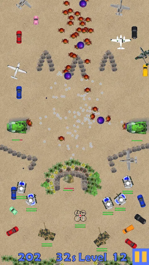 控制你的四轴飞行器、越野车和坦克军队来击败入侵的外星人。找到他们的飞船并用你的坦克炸毁他们。保卫你的雷达,用你的医疗四轴飞行器修复它们。将你陷入困境的陆军营送回你的基地