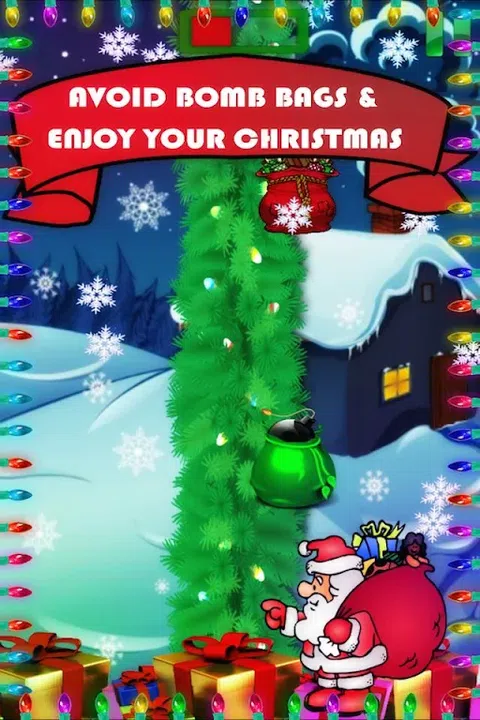 圣诞老人需要你的帮助! 圣诞节快到了,圣诞老人今年没有给孩子们的礼物,因为有人偷走了它们。 现在又轮到你帮他收集礼物了。它们挂在松树上的某个地方。 一些邪恶势力还用炸弹袋取代了礼品袋,所以要小心,避免圣诞老人收集炸弹袋! 更多礼品袋将带来更多享受和无限乐趣! 你会帮助圣诞老人完成这个使命吗? 哦好。 圣诞节快乐