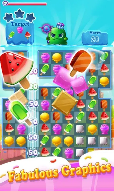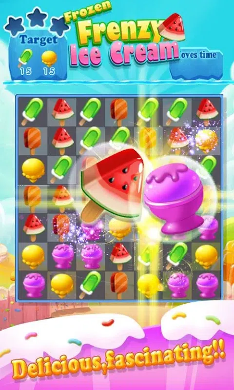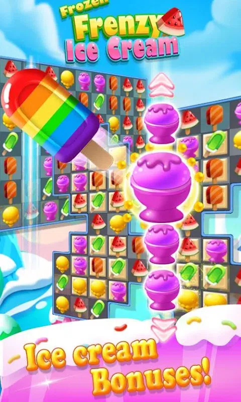 惊人的免费冷冻疯狂比赛3益智游戏,水平或垂直匹配相同颜色的美味冰淇淋。 用手指溅起冰冻的冰淇淋,收拾盘子,成为这个冰淇淋天堂的王者! 芒果冰淇淋、西瓜冰淇淋、蓝莓冰淇淋、哈密瓜冰淇淋、巧克力冰淇淋等。 在限定动作内完成任务,匹配至少3个相同颜色的可爱冰淇淋。 切换相邻的冰淇淋,使3个或更多相同类型的冰淇淋一起消除! 当你 匹配 4 冰淇淋 你会得到一个冰淇淋,它可以消除一行冰淇淋。 当你 匹配 5 冰淇淋 你会得到一个彩色球,它可以消除所有相同颜色的冰淇淋! 当你匹配6个冰淇淋时,你会得到一个炸弹! 尝试切换两个特色冰淇淋,你会收到一个大大的惊喜! - 多种游戏道具:炸弹、彩球、添加动作、发烧等。亲身体验游戏中所有这些有趣的道具! - 七彩球可以帮你消除所有相同颜色的冰淇淋,盒装冰淇淋可以帮你消除一行冰淇淋,炸弹可以清理它周围的所有冰淇淋。 - Spin:我们每天都为你准备了一些惊喜。您可以花费 39 个硬币获得抽奖机会。您将随机收到硬币或游戏道具。试试你的运气! 特征: - 匹配三个动作益智游戏 - 五颜六色和生动的冰淇淋。 - 易学难精。 - 令人兴奋和美味的冰淇淋之旅。 - 数百个甜蜜关卡,持续更新! - 甜美的BGM,以生动的音效开启冒险之旅。 - 超越自我,挑战3星