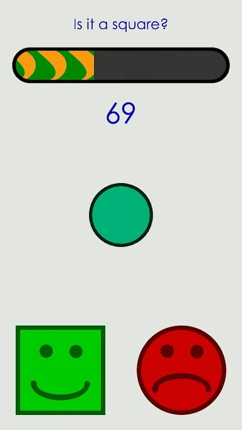它是一个正方形是一个非常简单的游戏。你的唯一任务是不同,无论一个形状是正方形,那么你必须按下大绿色方块,或者形状是否不是正方形,那么你必须按下大红色圆圈。 这听起来很简单,但你忘记了一个方面,你在整个游戏中的唯一敌人:时间。 最后要提一件事:我向你保证,你至少会死于一个红色方块