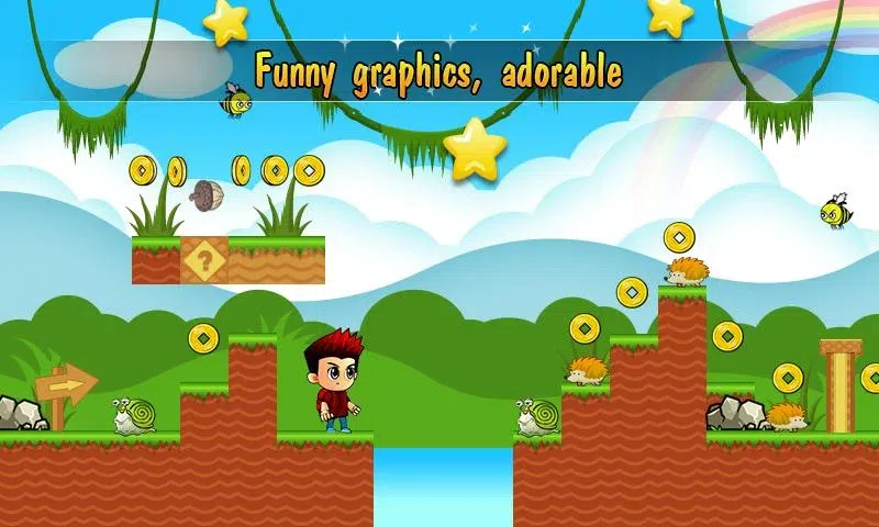 男士梅里奥 梅里奥男孩迷失在神秘的童话世界中。 请运用所掌握的跳高、射栗的技巧。 有许多物品可以支持 Merio 男孩的冒险,例如: 增加心脏寿命 栗子杀怪