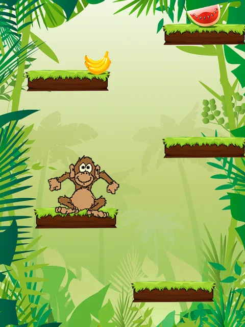 一个新的可爱游戏猴子。跳,并得到一些香蕉给饥饿的猴子。它是一个简单的游戏,你可爱的猴子需要跳和收集香蕉,苹果和西瓜。随着25香蕉每一个集合,你会得到一个机会,使沉重的跳跃,它会加分,以你的分数too.Apple会给猴子一个大的跳跃和西瓜会给你一个防护罩.这个游戏是所有年龄以让我们开始收集美味的香蕉.