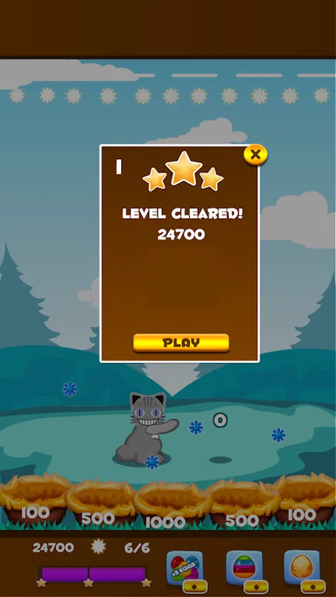 游戏特色 - 累了可爱的猫 - 16 级游戏 - 击球前交替球的颜色。 - 第一级的目标线 尽量不要让猫失望
