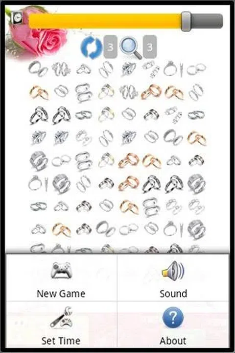 戒指连连看是一个简单好玩的消磨时间的小游戏。操作方法跟其它的连连看游戏一样。连续点击2个相同的图标,如果它们之前能够用线条连接,而且线条不超过3根,就可以消掉。 在游戏的下方有刷新按钮和提示按钮,可以给您提供游戏帮助。单击菜单,您可以设置声音和游戏时间。 希望您会喜欢这款软件