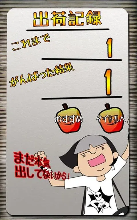 简单易行!非常适合消磨时间! “摇滚苹果” 热爱摇滚的摇滚少女。 我开始打包苹果盒去参加我最喜欢的乐队的音乐会! ● 游戏内容 这是一个简单的游戏,将掉落的苹果扔进你面前的盒子里。 触摸苹果并将其放入盒子中。 如果你在一个盒子里放了 5 个苹果,它就会被运送,并且会出现下一个空盒子。 漏掉一个苹果或把它从盒子里洒出来都是错误的。 如果你犯了 5 次错误,你就会被解雇(游戏结束),所以要小心。 随着发货数量的增加,出来的苹果数量也随之增加,流动的速度也随之加快。 每隔一段时间,就会流出闪亮的苹果和烂苹果。 如果你在盒子里放一个发光的苹果,你被解雇的次数就会恢复。 相反,如果你把一个烂苹果放进去,你被解雇的次数就会减少一次。 即使你错过了一个闪亮的苹果或一个烂苹果,也不会是一个错误。 游戏结束时,会显示过去最高出货量和本次出货量。 如果您更新您的记录,它也会被记录在排名中。 多多poi poi,和大家比拼出货数量