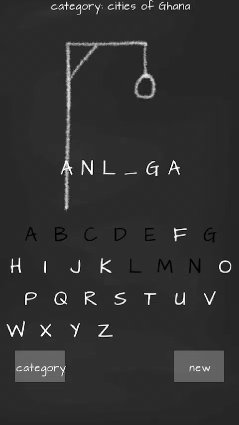 加纳类别的刽子手文字游戏: 动物, 名字, 加纳的城市, 世界各国, 名人, 食物, 武器