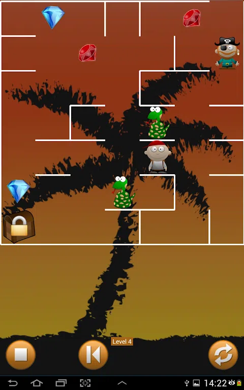 尝试找到海盗岛上的所有钻石。如果这样做,您可以获得大宝藏! 但是要小心海盗,如果他抓住了你,游戏就结束了。在最困难的游戏中,岛上也有蛇
