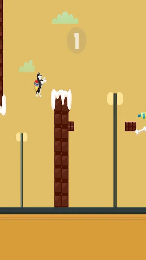 点击让小狗飞过游戏并避开巧克力!您通过的每一块巧克力都会获得一分!收集骨头来解锁角色