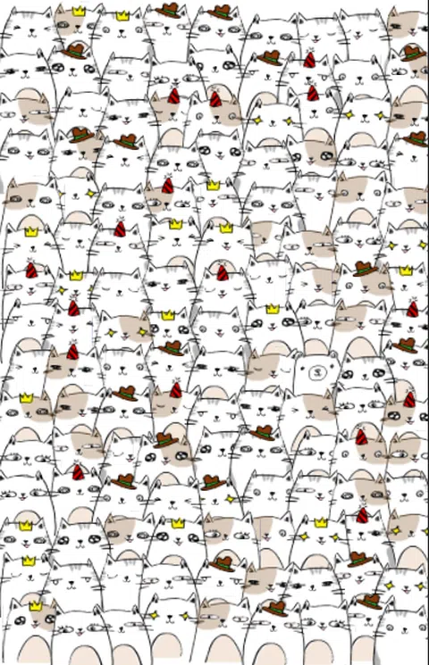 北极熊极地躲在众多喵喵声中。 找到隐藏的北极熊 Polar。 与孩子一起享受的简单游戏!