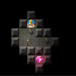 游戏采用网格的形式。玩家需要控制角色移动到位炸弹引爆破墙吃钻石