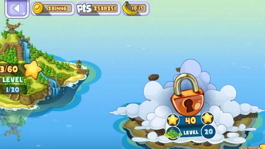 这是科科穿越岛屿收集宝藏的冒险。岛上有很多黄金。但要小心,这里有很多挑战,尤其是射击香蕉回旋镖的愤怒狒狒。 怎么玩: - 1次点击跳跃 - 点击并按住跳得更高 - 在空中点击并按住以平滑下降 - 向下滑动以快速下降 - 避开障碍物:拿着长矛的疯狂大猩猩、射向香蕉回力镖的愤怒狒狒、食人鱼植物等