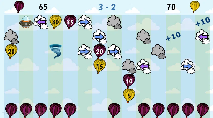 Loon Away 的目标是让您的气球在游戏板上尽可能高。气球升得越高,获得的分数就越高。游戏结束时得分最高的玩家为获胜者。 如果你击中一个不明飞行物,它会摧毁你的气球。每转一圈,它们继续一次在天空中移动一个空间。 乌云会阻止气球飞得更高。 定向云将按照箭头的方向发送气球。一旦气球击中其中一朵云,箭头就会转向另一个方向。 龙卷风会将您的气球移动到游戏板上的随机位置,如果能够这样做,它会继续爬得更高。 奖励积分:如果你能让你的气球通过其中一个,你的分数将额外增加 10 分