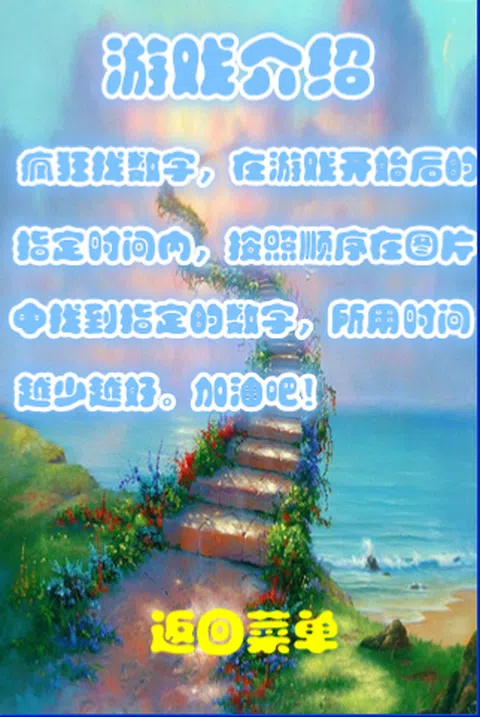 疯狂找数字,在游戏开始后,你要按照提示顺序的找出图片中的数字。这是一款看似简单,但是却有很高的难度和挑战性的游戏。完全挑战你的眼力和反映速度