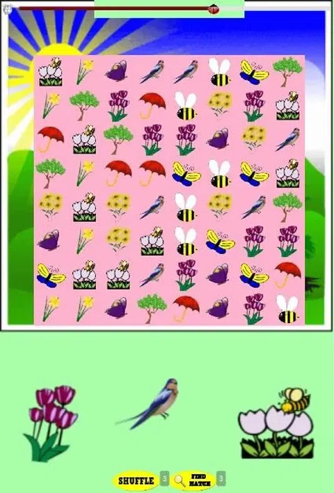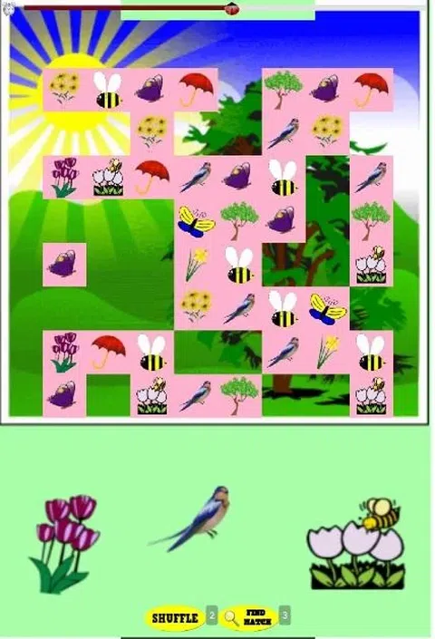 Free Spring Game 是一款定时匹配游戏,以各种春天图像为特色。配对很容易,对孩子和每个人来说都很有趣!游戏的目标是匹配所有的花、鸟或树图标,并在计时器用完之前清除棋盘。比赛必须,否则不能从棋盘上清除。匹配发生的一种方式是当匹配的 Spring 图像彼此相邻时,并排或上下重叠。另一种匹配方式是当游戏卡是免费的而不是盒装的时候。你可以通过从外面进入并从内部离开来清理棋盘。您将能够看到找到的,因为当您单击的匹配项时,Free Spring Game 会向您显示。 如果您需要帮助,最多可以使用随机播放按钮 3 次。当您单击 Shuffle 时,Spring 游戏图像会混合在一起,以便更容易找到匹配项。您还可以使用查找匹配按钮 3 次,这实际上会向您显示匹配的。 在庆祝阳光、鲜花和鸟儿的到来时,玩这个免费的春季游戏会很有趣! Google Play 上提供了这款春季游戏的无广告版本