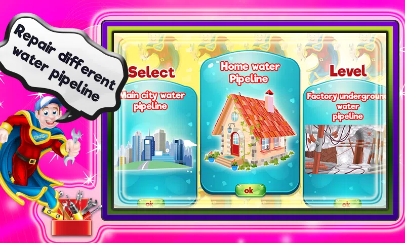 在这里,我们在镇上有我们的专业水管工,他们以非常公平的劳动率提供他的专业知识。该建筑物的卫生管道受到渗漏的影响,并在管道中产生裂缝。这需要立即处理,否则会造成巨大损失。 管道工正带着他所有最新的工具和设备前往现场。管道工将修理和修复管道中的裂缝,并将在需要时更换损坏的管道。水管工也会照看并检查所有的卫生设备,并查看是否需要任何处理。 下载这个水管工管道修复游戏,修复房子的管道结构。在专家水管工的帮助下修理浴室和厕所。这个水管工管道维修游戏还帮助我们理解和学习如何在家里或任何其他需要的地方在没有管道工帮助的情况下及时处理小的管道维修工作。下载并享受