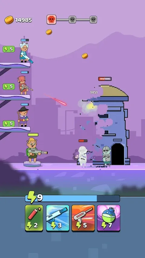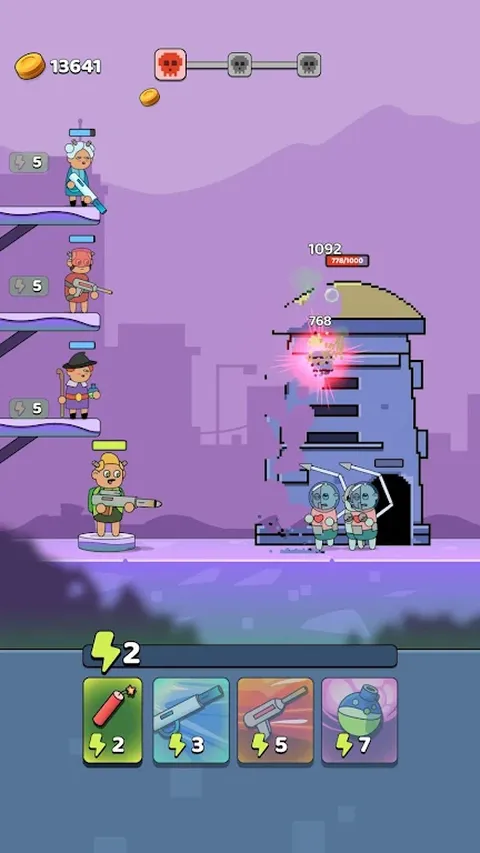 像素战士是一款以末世后世界为背景的动作丰富的防御游戏。敌人的机器人占领了你的星球,建造塔楼,不断生产更多机器人。你的任务是摧毁这些塔并夺回你的世界! 史诗助手:解锁投掷冰块、激光和化学药水的助手,每个助手都有独特的能力来粉碎你的敌人! 角色升级:使用主屏幕上的升级选项来增强您的能力并为更艰难的战斗做好准备。 策略和行动:结合你的技能和反应来摧毁塔楼,体验独一无二的游戏冒险! 是时候夺回你的星球了!加入像素战士的战斗,结束机器人入侵。