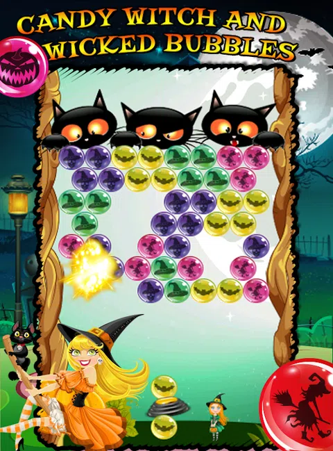 想像您是一名正在学习巫术和施展魔术的女巫或者术士。让糖果女巫引导您完成您的魔法教育。您唯一要做的就是匹配邪恶的泡泡!这款魔术般的泡泡射击游戏将为您打开一扇通往神秘城堡的大门,那里女巫和术士通过爆破泡泡来施展他们的法力。通过这款令人难以置信的泡泡爆破游戏加入到这个神奇的世界。 邪恶的泡泡里有许多魔术道具。通过爆破泡泡来收集小南瓜、尖顶魔术帽子、黑色猫、死人头以及墓地附近恐怖的鬼魂以及神秘的城堡;简单一名话,就是收集让您成为一名巫师所需要的一切东西!您不需要魔仗或者长柄扫帚,只需要爆破邪恶的泡泡
