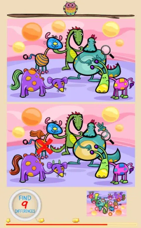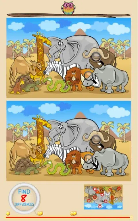 找出差异游戏对每个人来说都非常有趣,尤其是孩子们!在这个游戏中,总共有 25 个关卡。在每个关卡中,您都会看到一个图像的两个版本,并且必须通过触摸或单击这些点来找出它们之间的 10 处差异。还有一个计时器,您的最终分数是基于它的(最高为 3 星)。请注意,错误的点击也会减少您的时间和最终得分,所以在决定之前请三思而后行!所有的游戏图像都是动物的可爱卡通图像,让孩子们的游戏更加有趣