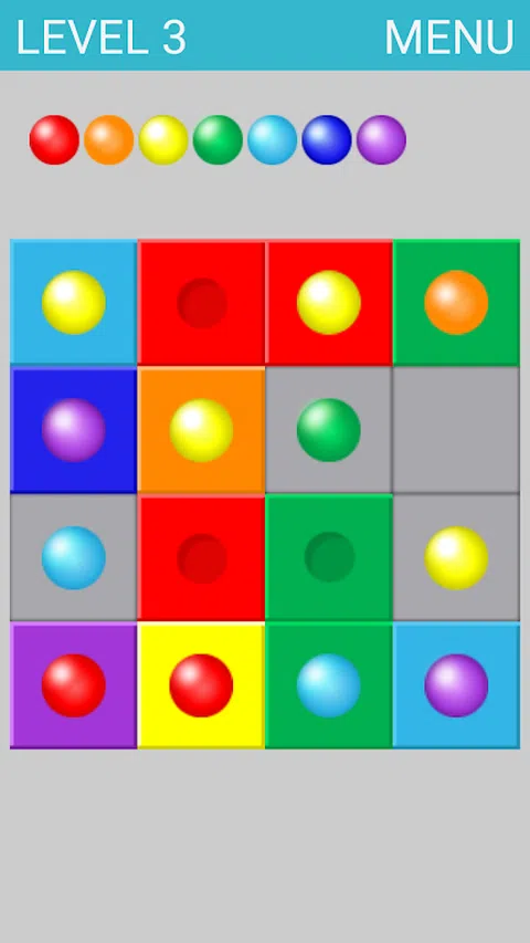 带有球的条可以移动到任何空闲单元格。 没有球就不能移动瓷砖。 球可以移动到瓷砖上的单元格或没有球的任何颜色的瓷砖,它位于相邻的单元格中。 如果您将球放在相同颜色的方块上,它们就会消失。 玩家的问题 - 至少移除一个带有每种颜色的球的瓷砖,但可以移除并超过一个,直到所有球都过网后才会消失。可以按任意顺序删除,不一定要从红色开始。 在第一级,从所有五种颜色的球中移除瓷砖。 在第二级 - 六种颜色。 在第三级 - 七种颜色。 Diese faszinierende Denksportaufgabe 帽子 2 Spielvarianten。 -Die Platte mit dem Ball kann sich auf jede freie Zelle bewegen。 -Die Platte ohne Ball kann sich nicht bewegen。 -Der Ball kann sich auf die Platte ohne Ball,die sich nachbarlich befindet,bewegen。 -Wenn man auf die Platte der gleichen Farbe einen Ball liegt, werden sie verschwinden。 -Die Aufgabe ist mindestens eine Platte mit dem Ball jeder Farbe in beliebiger Reihenfolge zu entfernen。 -Im ersten Stufe muss man die Bälle aller fünf Farben entfernen。 -Im zweiten Stufe muss man die Bälle aller sechs Farben entfernen。 -Im dritten Stufe muss man die Bälle aller sieben Farben entfernen