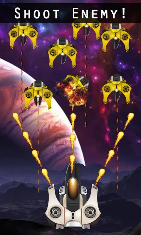 它完全免费。享受吧! 全3D太空战斗! 适用于所有玩家的多种控制类型! 这是一款带有宇宙飞船的动作游戏,它将探索宇宙中不同的星球,每个星球都有不同的敌人,他们的行为也不同。穿越太空并消灭敌人!只需在任何方向触摸并拖动太空战争飞机即可避开敌人的炸弹。 (怎么玩) 1.操作:连续触摸屏幕移动飞机,点击设备底部很容易躲避敌人的轰炸。 2.道具:点击对应的道具按钮使用其效果; 3.获得能量:获得的能量可以用来强化装备库中的武器; 4.装备升级:选择飞机,升级武器装备; 5.恢复:平面恢复后,你的分数会不断增加; 6