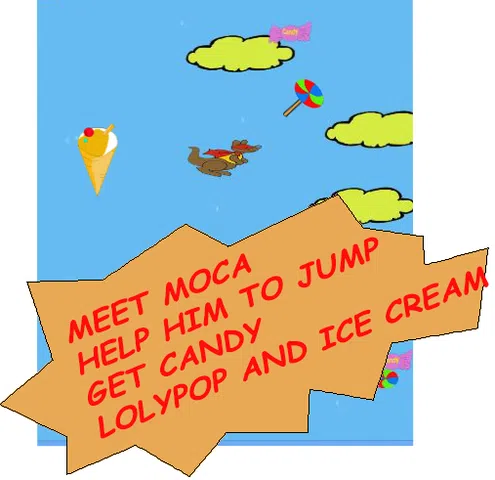 只是跳过金色的云。帮助袋鼠莫卡获得糖果、棒棒糖、冰淇淋