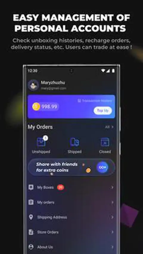 以超低价格获得惊喜商品! 我们的APP里有各种神秘盒子,包括智能3C产品、时尚配饰、工艺品、箱包等等。新用户可以享受专属福利并免费获得额外金币。快来开启你的神秘盒子之旅吧